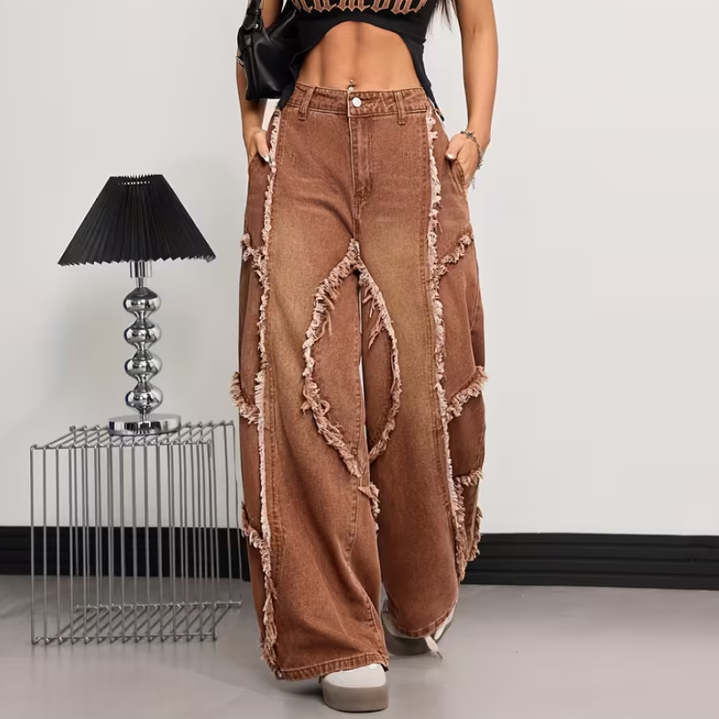 Women’s High Street Deconstructed Fringe Loose Jeans